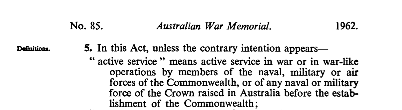 “war” or “war-like operations" and the Australian participants were in “active service”, as defined under the founding Australian War Memorial Act 1962 (see Figures 1 and 2 and ).