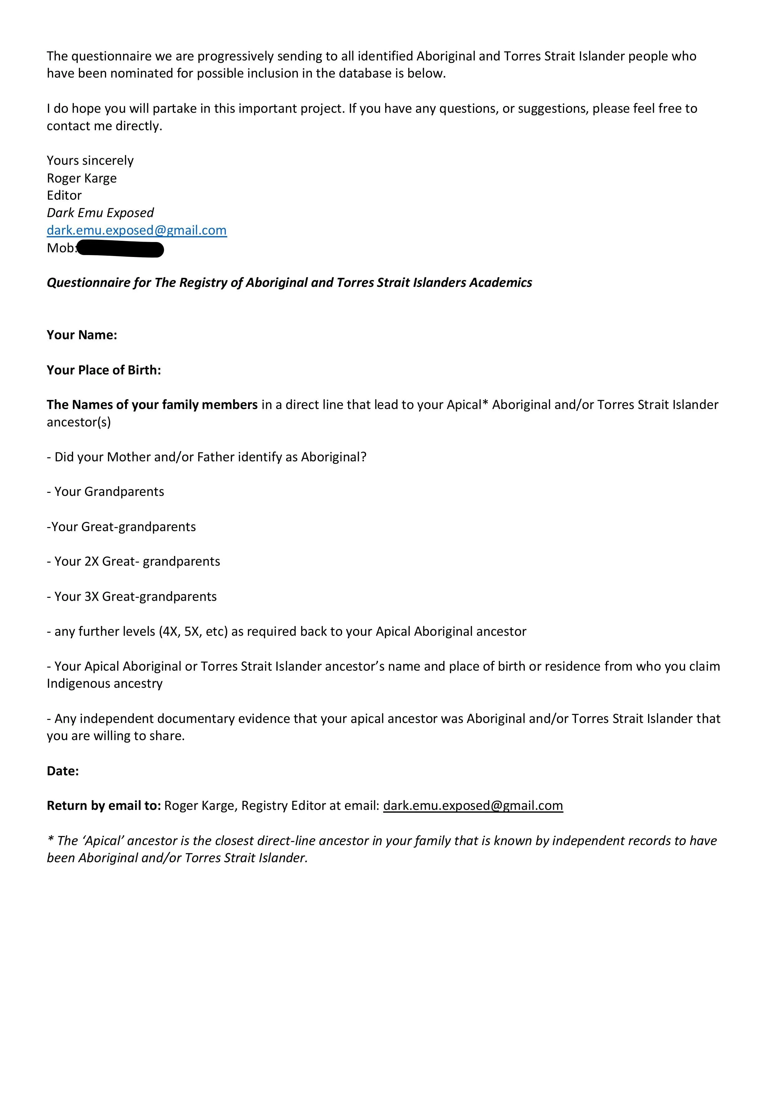 Quite independently, Dark Emu Exposed has been commissioned to investigate the creation of an independently verifiable Registry of Aboriginal and Torres Strait Academics.