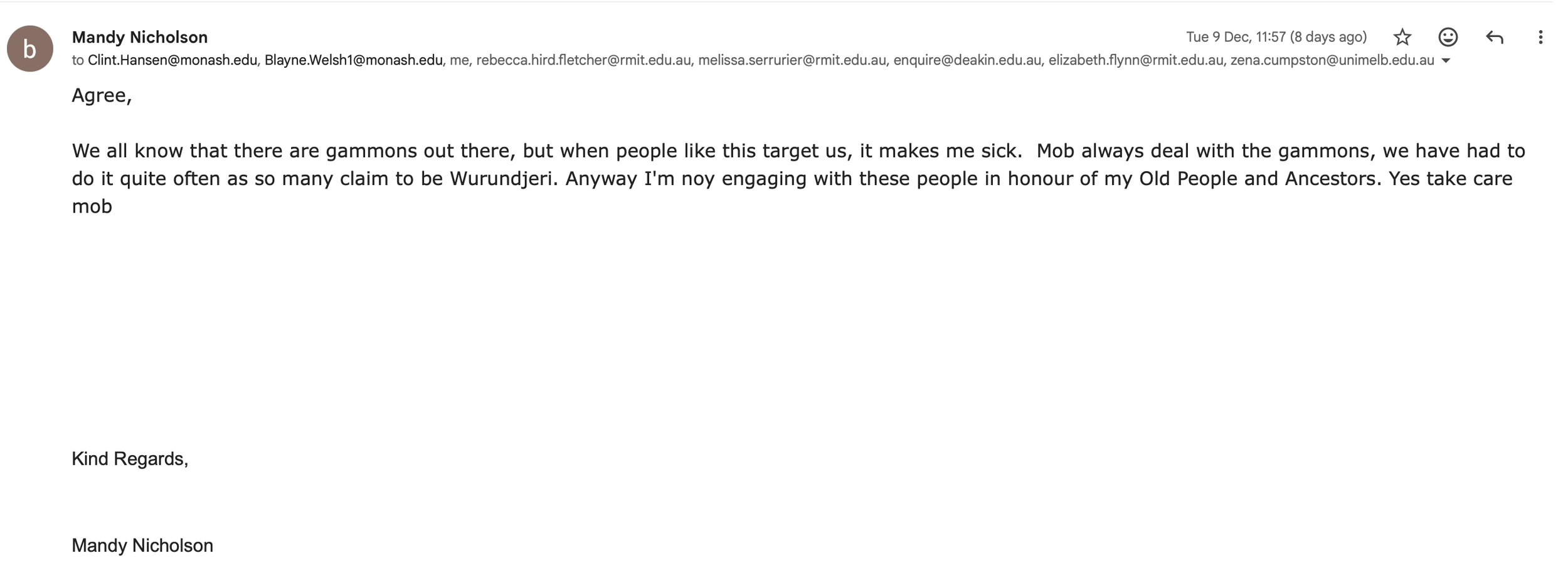 A lovely detailed email response as well as a long phone call was received by Dr Jodi Edwards on 5 Dec 2025, a day after the group email in Figure 1 was sent.