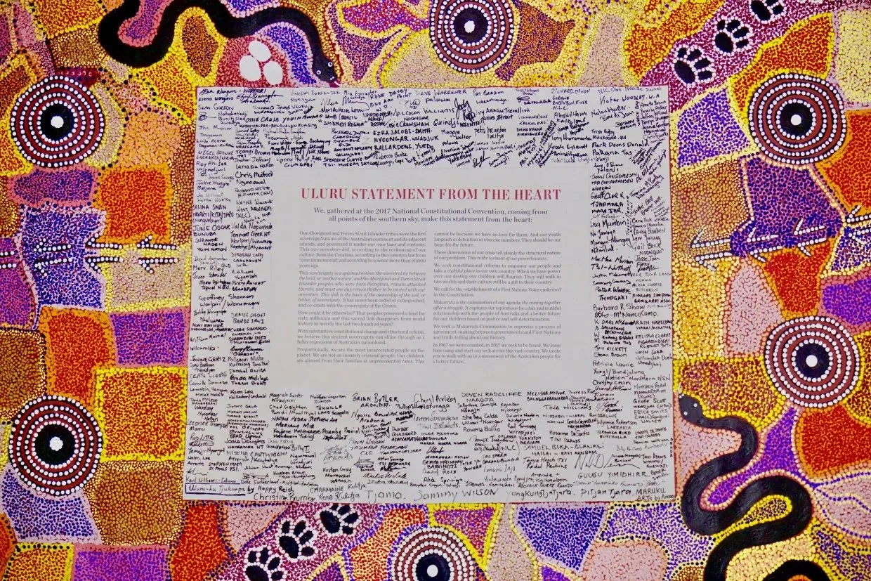 - From the display of the Uluru Statement from The Heart Canvas at the Northern Territory Library in Parliament House.